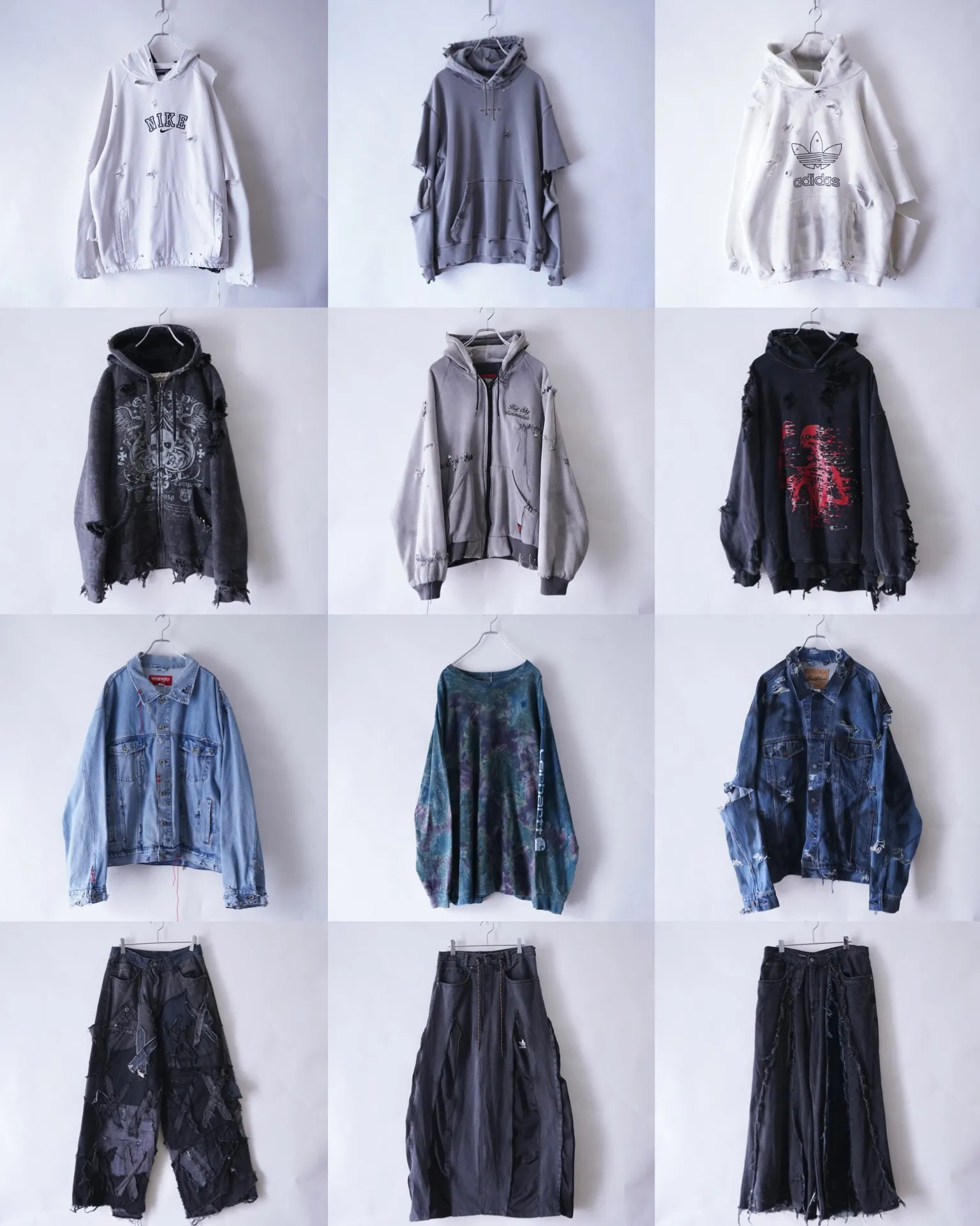 Y2Kテイストにダメージ(ボロ)、安ピン、刺繍を施した"Dark Side Remake"、