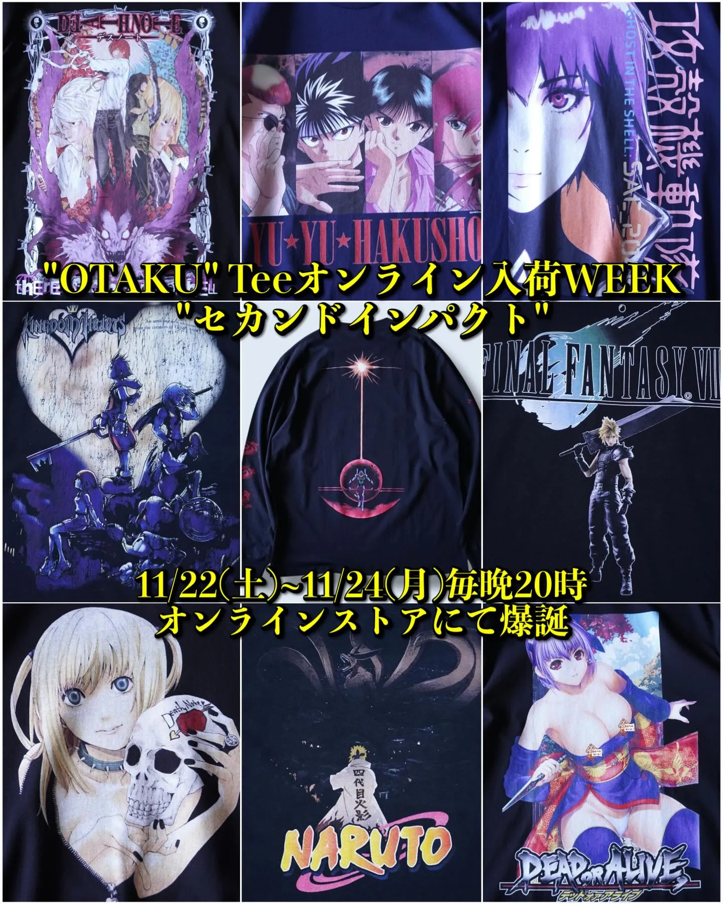今回、11月19日から続くオンラインショップでのアニメTシャツ大量入荷WEEKに合わせて、11月22日(土)から11月24日(月)までの3日間も、